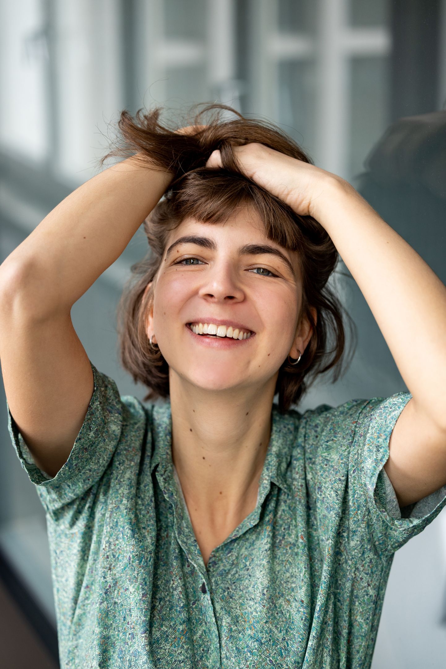 Anfang und Ende des Anthropozäns (Drama)65/Angestellte W.S.P./Pförtnerin/Tochter/Girl (LR) Marie-Sophie Dudzic Theater: Landesbühne Niedersachsen Nord